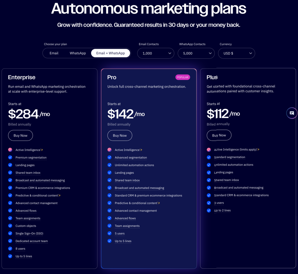 Well, this is where things get interesting. ActiveCampaign uses contact‑based pricing with several plan tiers—commonly Starter, Plus, Pro, and Enterprise—with the monthly cost rising as both your feature needs and contact list grow.