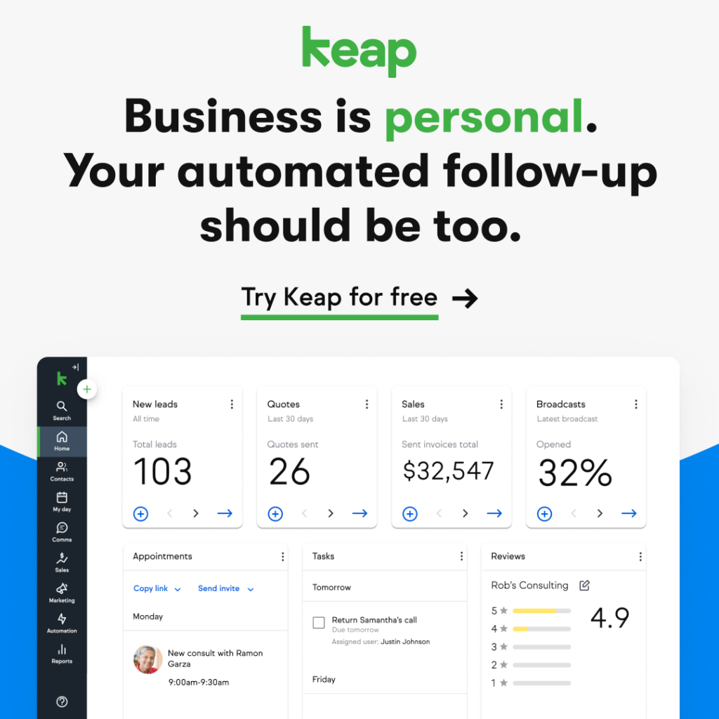 In short, Keap acts like a digital operations manager. One that never sleeps, never forgets, and doesn’t get overwhelmed when your business starts to grow.