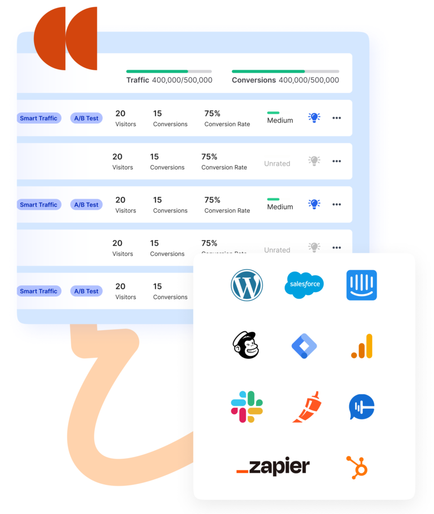 - Smart Traffic: This AI feature automatically routes visitors to the page variant they’re most likely to convert on, based on attributes like location, device, and behavior. Instead of manually splitting traffic 50/50, Smart Traffic “learns” which variation works best for each type of visitor.